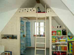 Dieses Hochbett wurde in eine Dachspitze eingebaut, um den Platz effektiv zu ntzen.