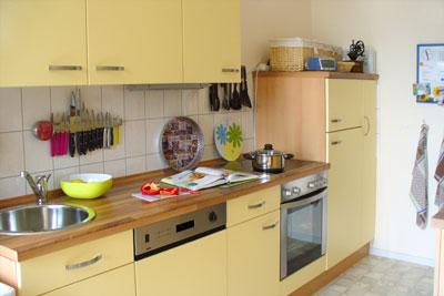 Neue Fronten und eine neue Arbeitsplatte, lassen diese ehemals alte, dunkle Küche im neuen Farben erstrahlen.